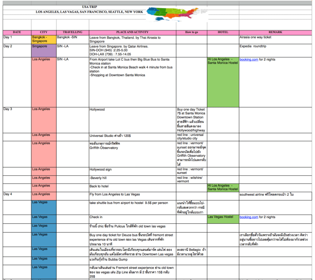 10. แผนการเดินทางตลอดระยะเวลาที่พำนัก (เราทำค่อนข้างละเอียด ไปที่ไหน ขึ้นรถลงเรือสถานีอะไร กะทำทีเดียว)